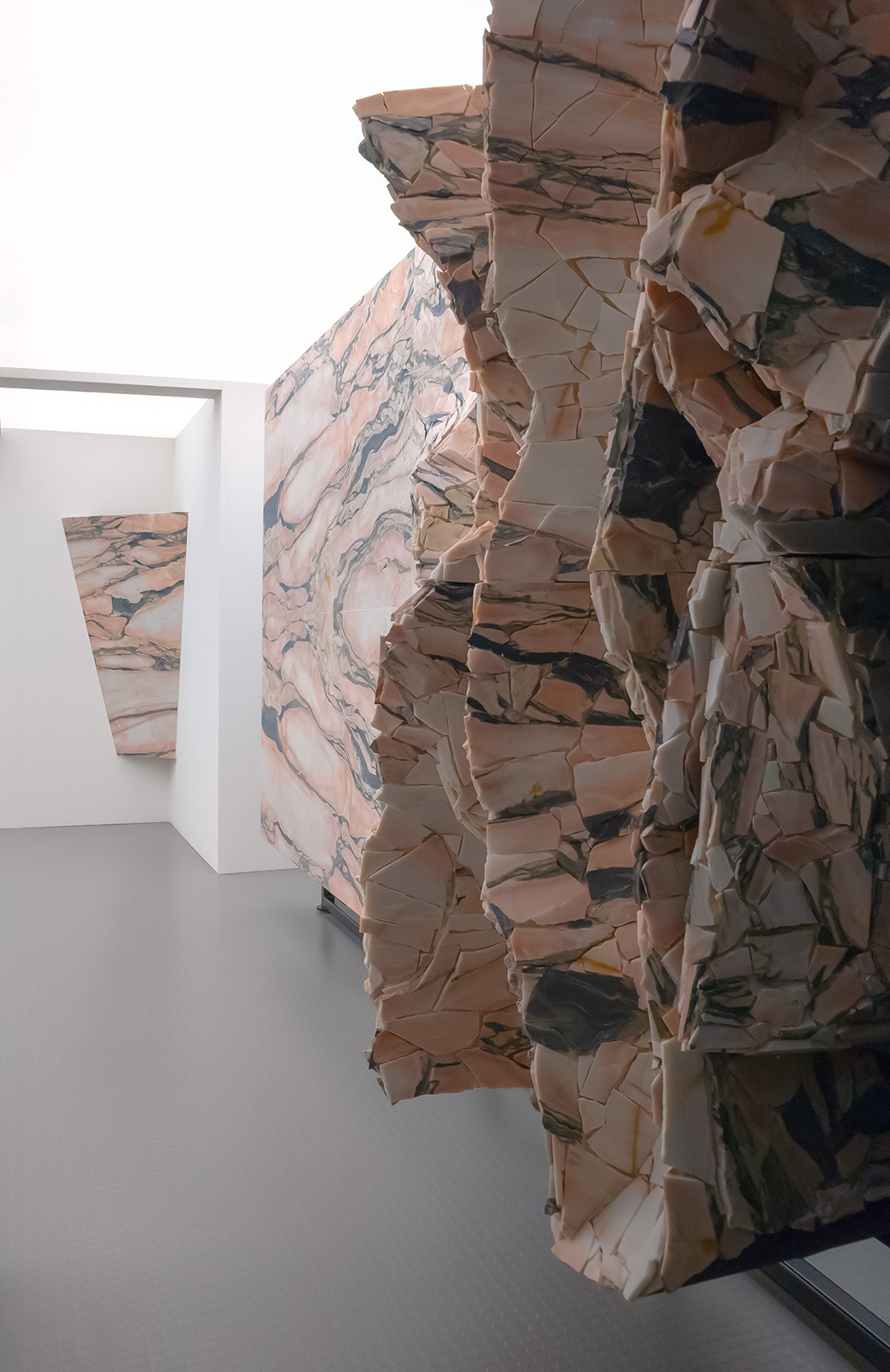 The conceptual approach of Hannes Peer, combined with Margraf’s expertise in natural stone craftsmanship, will bring to life an installation that redefines the perception of marble as a tool of rupture and revelation. CRASH explores collision as both a conceptual and physical force, reshaping objects and leaving visible traces. Marble challenges its own solid nature, detaching from the walls, shattering into space, and becoming a living element that defies architectural constraints.